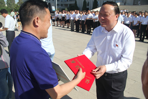 在當日同時舉行的“銀川市黨內關愛資金”捐款儀式上,集團黨委捐款貳拾萬元。市委徐廣國書記給集團公司雷光新董事長頒獎。